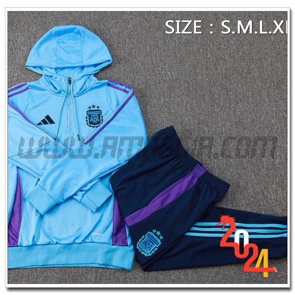 Nuovo Felpa Con Cappuccio Tuta Argentina Blu/viola 2024/2025 -02. sito affidabile per l'acquisto tute calcio a poco prezzo