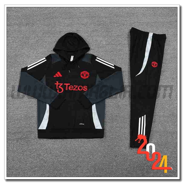 / Felpa Con Cappuccio Tuta Manchester United Nero 2024 2025