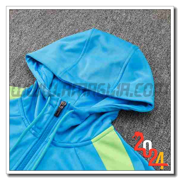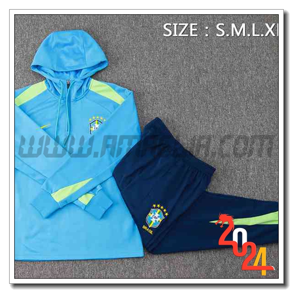 Nuovo Giacca A Vento Con Cappuccio Tuta Brasile Blu/Verde 2024/2025. sito affidabile per vendere tuta allenamento calcio squadre a poco prezzo