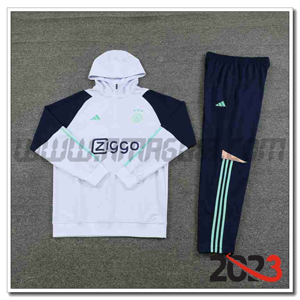 Nuovo Giacca Con Cappuccio Tuta Ajax Bianco 2023/2024. sito affidabile per vendere tuta allenamento calcio squadre a poco prezzo