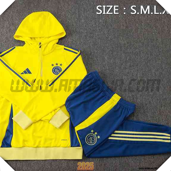 Nuovo Giacca Con Cappuccio Tuta Ajax Giallo/Blu 2025/2026. sito affidabile per vendere tuta allenamento calcio squadre a poco prezzo