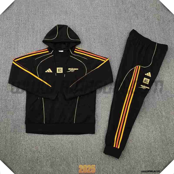 Nuovo Giacca Con Cappuccio Tuta Arsenal Nero/Arancia 2025/2026. sito affidabile per l'acquisto tute squadre calcio a poco prezzo