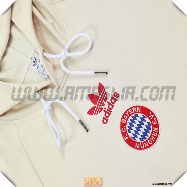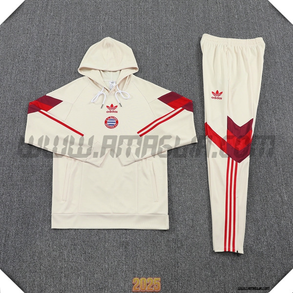 Nuovo Giacca Con Cappuccio Tuta Bayern Monaco Beige/Rosso 2025/2026. sito affidabile per vendere tuta allenamento calcio squadre a poco prezzo
