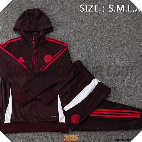 Nuovo Giacca Con Cappuccio Tuta Bayern Monaco Marrone/Bianco 2025/2026. sito affidabile per l'acquisto tute squadre calcio a poco prezzo