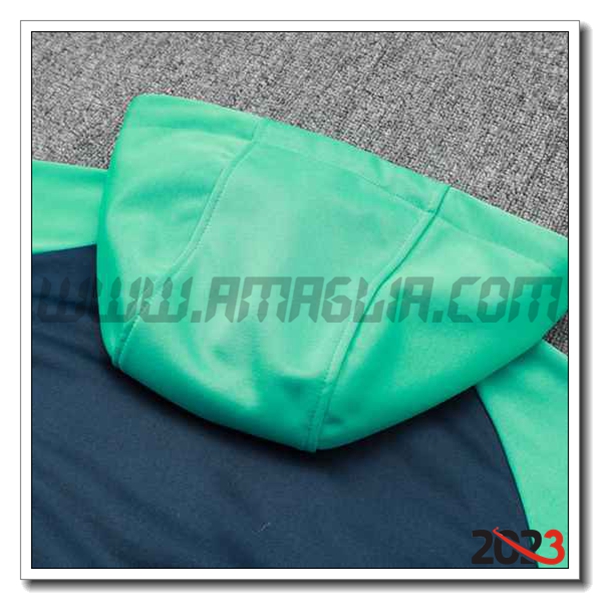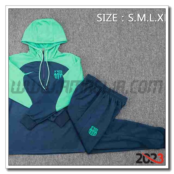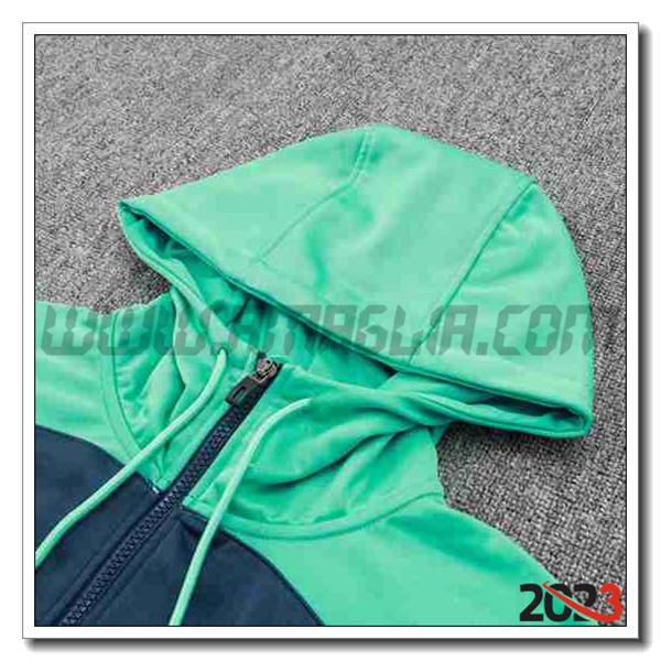 Nuovo Giacca Con Cappuccio Tuta FC Barcellona Blu/Verde 2023/2024. sito affidabile per vendere tuta allenamento calcio squadre a poco prezzo