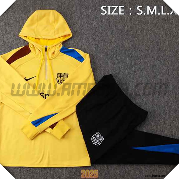 Nuovo Giacca Con Cappuccio Tuta FC Barcellona Giallo/Rosso/Blu 2025/2026. sito affidabile per vendere tuta allenamento calcio squadre a poco prezzo