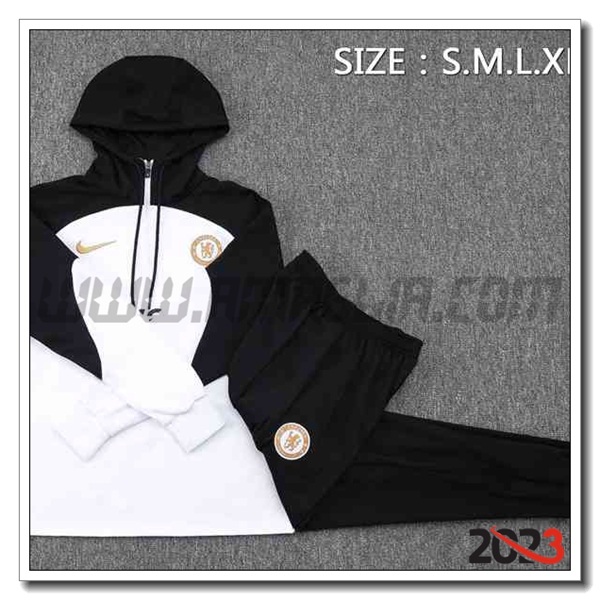 Nuovo Giacca Con Cappuccio Tuta FC Chelsea Bianco/Nero 2023/2024 -02. sito affidabile per vendere tuta allenamento calcio squadre a poco prezzo