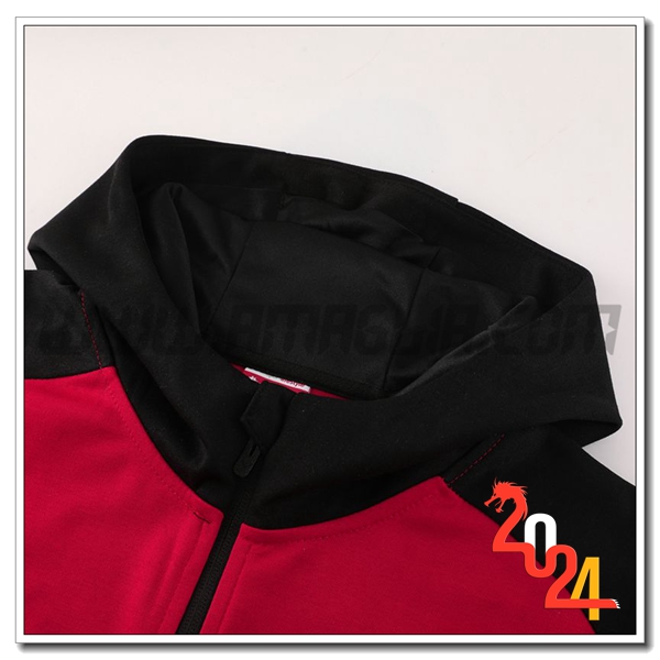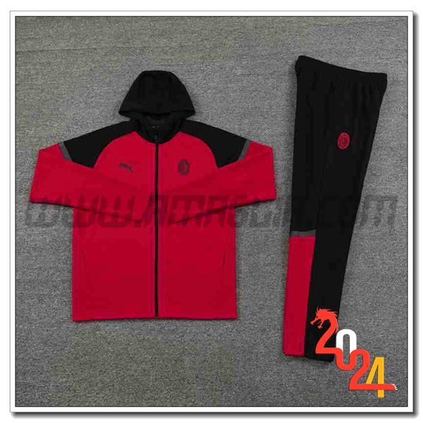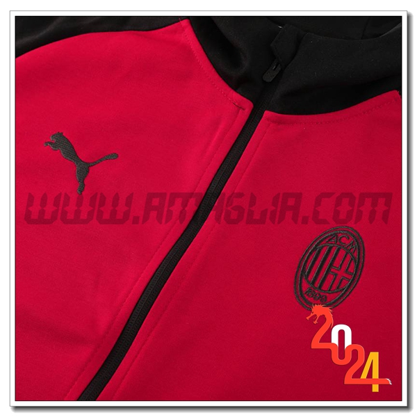 Nuovo Giacca Con Cappuccio Tuta Giacca A Vento AC Milan Rosso/Nero 2024/2025. sito affidabile per l'acquisto tute calcio a poco prezzo