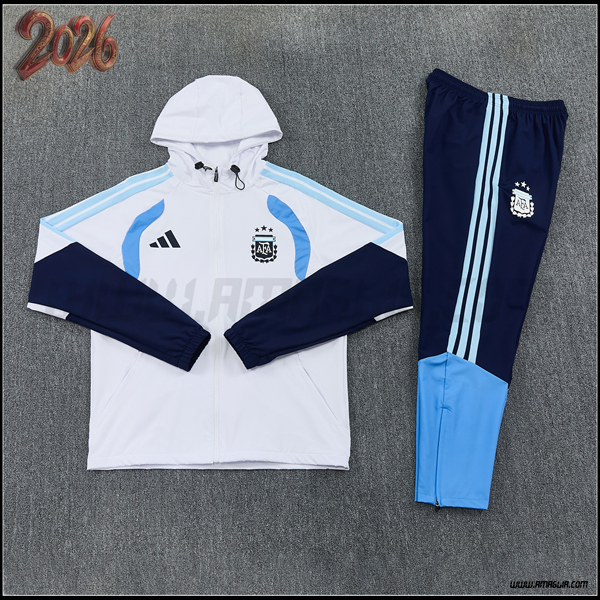 Nuovo Giacca Con Cappuccio Tuta Giacca A Vento Argentina Bianco/Blu 2026 2027. sito affidabile per vendere tuta allenamento calcio squadre a poco prezzo
