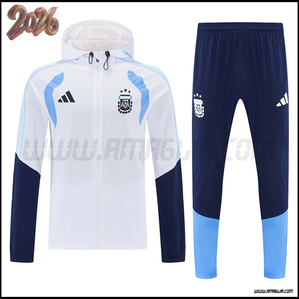 Giacca Con Cappuccio Tuta Giacca A Vento Argentina Bianco/Blu 2026/2027