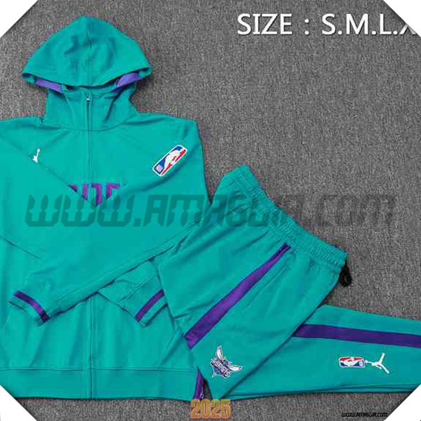 Giacca Con Cappuccio Tuta Giacca A Vento Charlotte Hornets Verde/viola 2025 2026