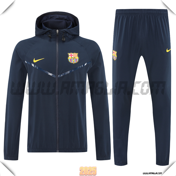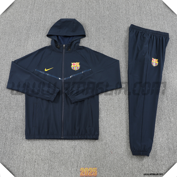 Nuova Giacca Con Cappuccio Tuta Giacca A Vento FC Barcellona Nero 2025/2026. sito web affidabile per ordinare tute di calcio a basso prezzo