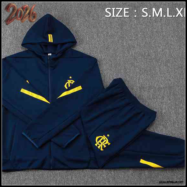 Nuova Giacca Con Cappuccio Tuta Giacca A Vento Flamenco Blu/Giallo 2025 2026. sito web affidabile per ordinare tute di calcio a basso prezzo