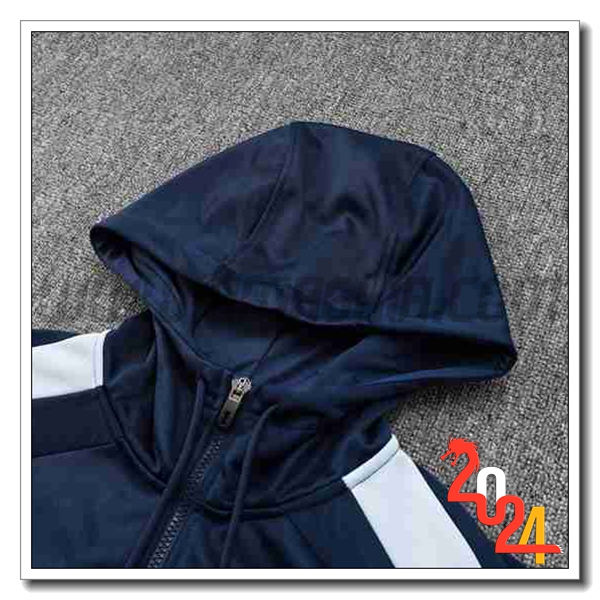 Nuovo Giacca Con Cappuccio Tuta Giacca A Vento Francia Blu Scuro 2024/2025 -03. sito affidabile per l'acquisto tute squadre calcio a poco prezzo
