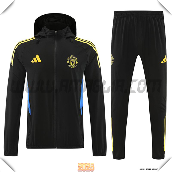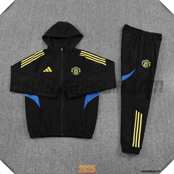 Giacca Con Cappuccio Tuta Giacca A Vento Manchester United Nero/Giallo/Blu 2025 2026