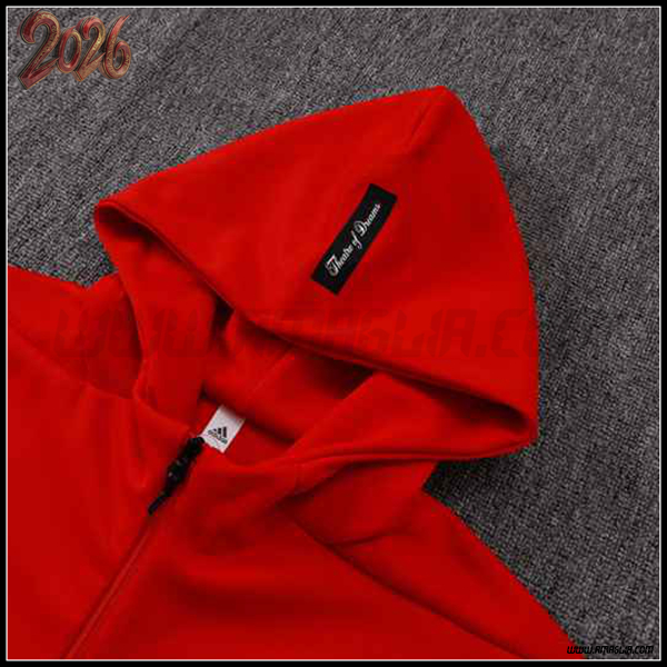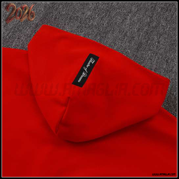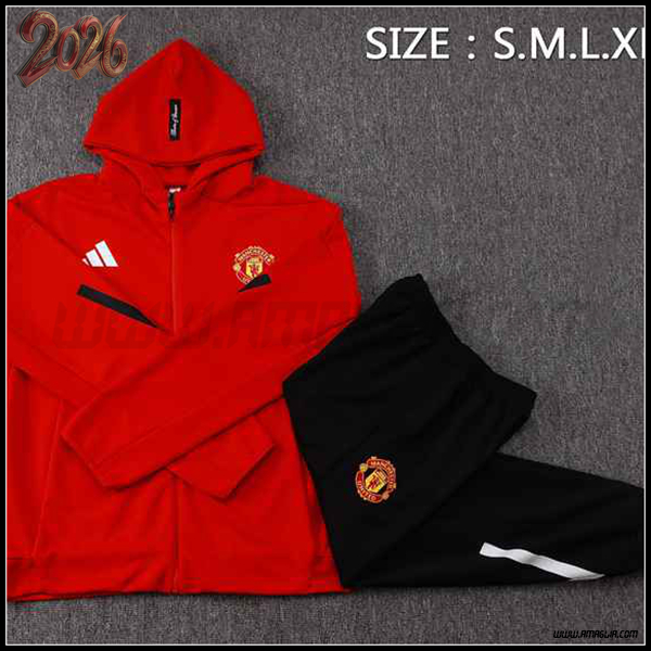 Nuovo Giacca Con Cappuccio Tuta Giacca A Vento Manchester United Rosso/Nero 2025/2026. sito affidabile per vendere tuta allenamento calcio squadre a poco prezzo