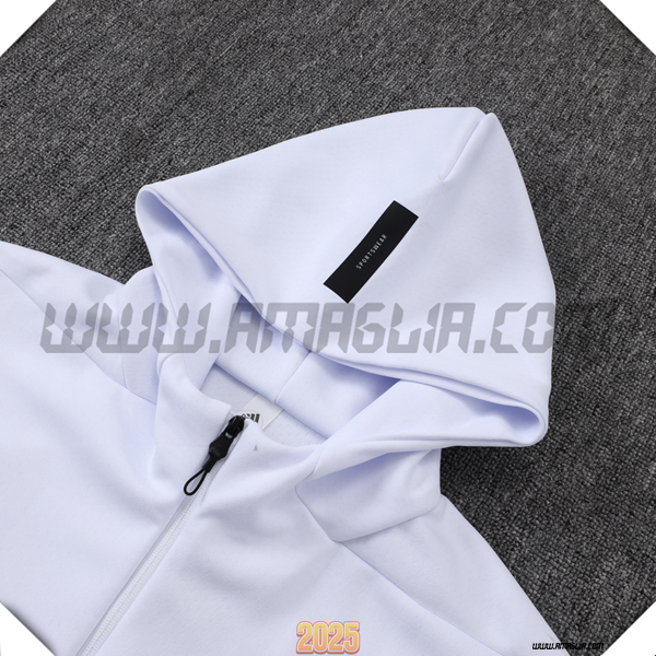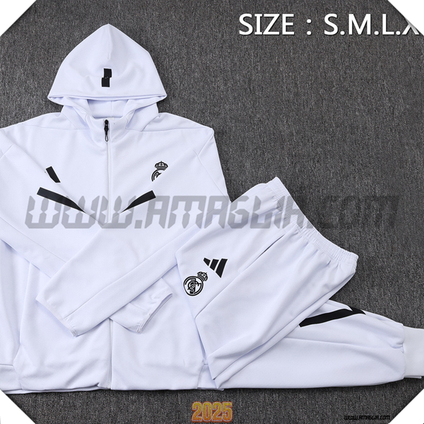 Nuovo Giacca Con Cappuccio Tuta Giacca A Vento Real Madrid Bianco/Nero 2025/2026. sito affidabile per vendere tuta allenamento calcio squadre a poco prezzo