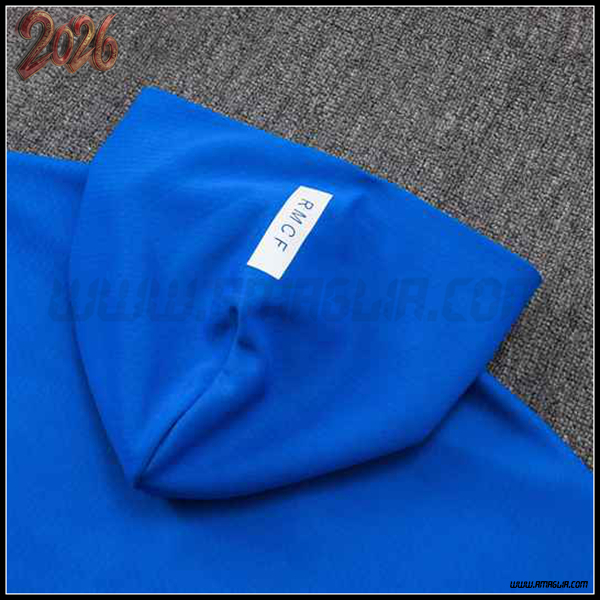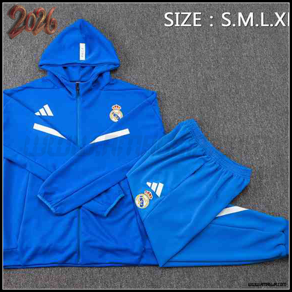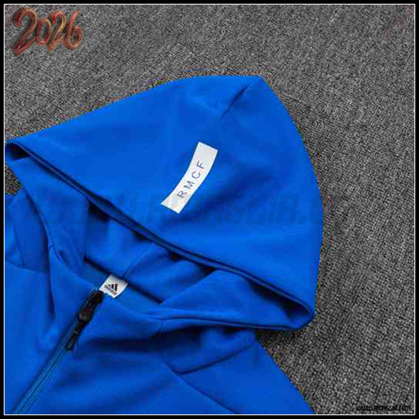 Nuova Giacca Con Cappuccio Tuta Giacca A Vento Real Madrid Blu 2025/2026. sito affidabile per vendere tute calcio a poco prezzo