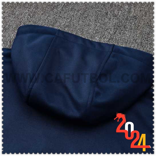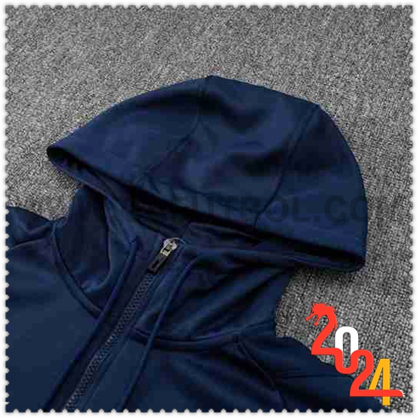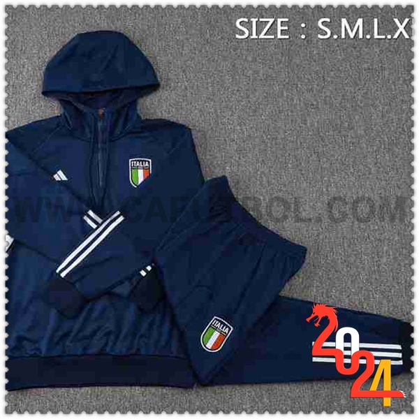 Nuovo Giacca Con Cappuccio Tuta Italia Blu Scuro 2024/2025. sito web affidabile per ordinare tuta allenamento calcio squadre a poco prezzo
