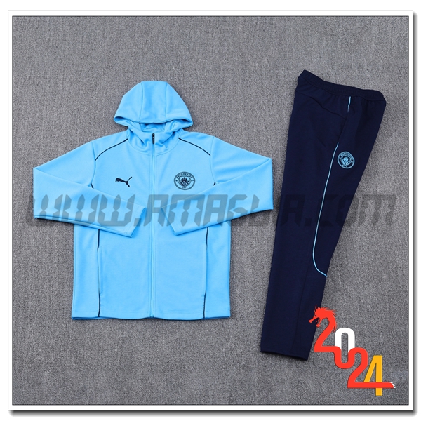 Nuova Giacca Con Cappuccio Tuta Manchester City Blu 2024/2025. sito affidabile per l'acquisto tute calcio a poco prezzo