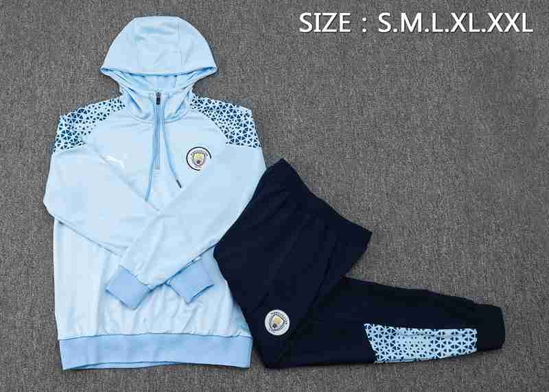 Nuovo Giacca Con Cappuccio Tuta Manchester City Blu/Nero 2023/2024. sito web affidabile per ordinare tute calcio a poco prezzo