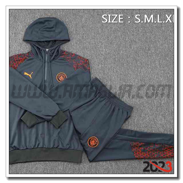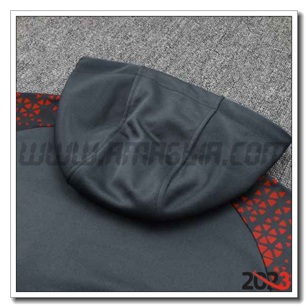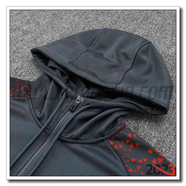 Nuova Giacca Con Cappuccio Tuta Manchester City Grigio/Rosso 2023/2024. sito affidabile per l'acquisto tute squadre calcio a poco prezzo