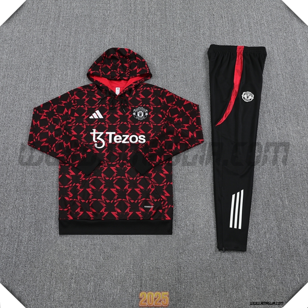 Giacca Con Cappuccio Tuta Manchester United Nero/Rosso 2025 2026