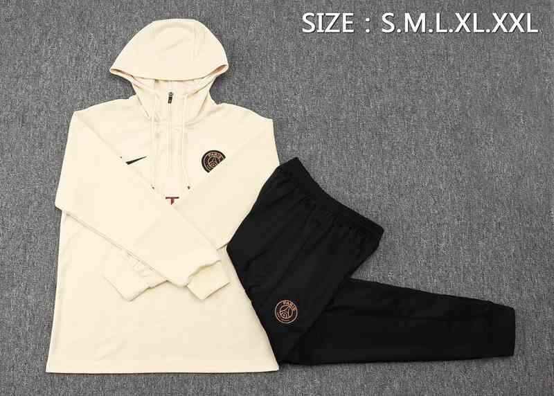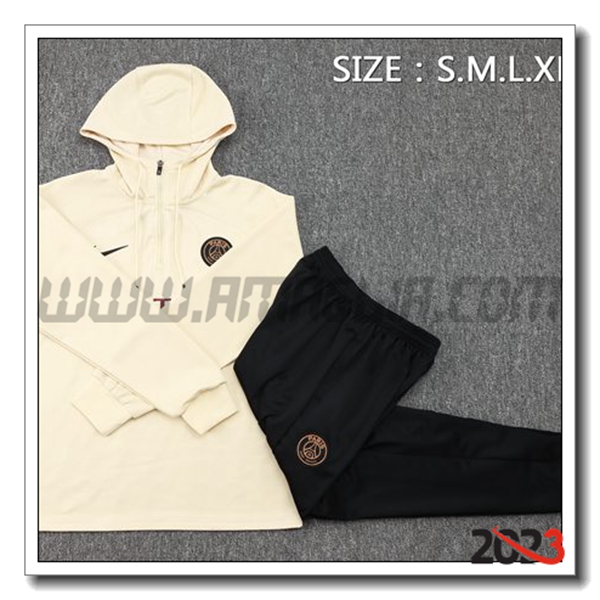 Nuovo Giacca Con Cappuccio Tuta PSG Beige/Nero 2023/2024. sito affidabile per vendere tuta allenamento calcio squadre a poco prezzo