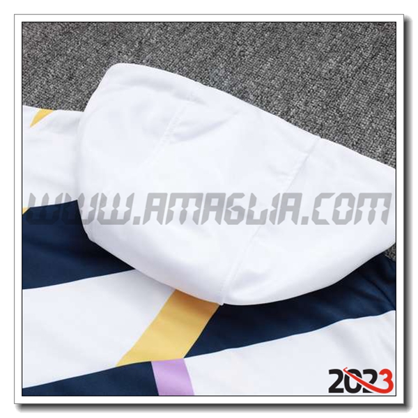 Nuova Giacca Con Cappuccio Tuta Real Madrid Bianco/Blu/viola 2023/2024. sito affidabile per l'acquisto tute calcio a poco prezzo