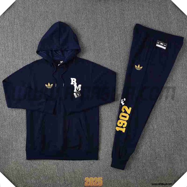 Nuovo Giacca Con Cappuccio Tuta Real Madrid Blu Reale 2025/2026. sito affidabile per l'acquisto tute calcio a poco prezzo
