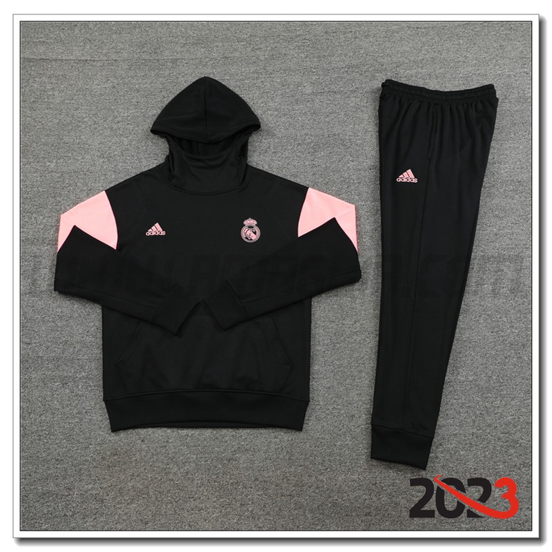 Nuovo Giacca Con Cappuccio Tuta Real Madrid Nero 2023/2024 -02. sito affidabile per l'acquisto tute calcio a poco prezzo