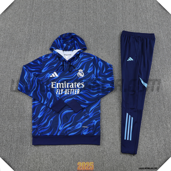 Nuova Insieme Giacca Con Cappuccio Tuta Real Madrid Blu Scuro 2025/2026. sito affidabile per vendere tute calcio a poco prezzo