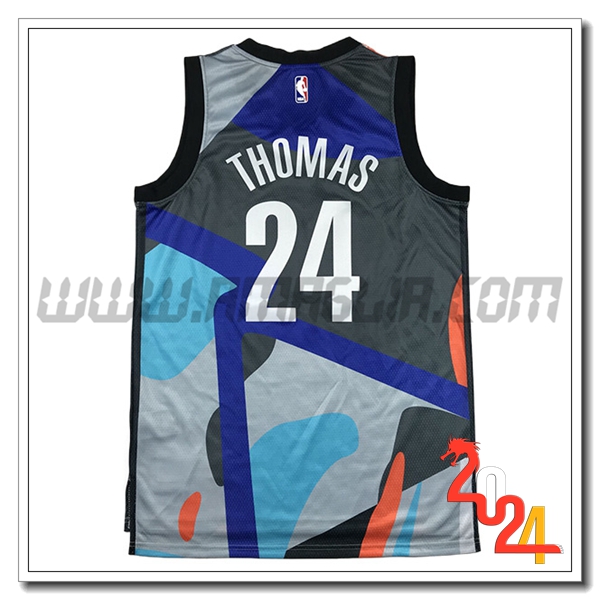 Nuovo Maglia Brooklyn Nets (THOMAS #24) 2024/2025 Grigio/Blu/Arancia. sito affidabile per vendere tuta allenamento calcio squadre a poco prezzo