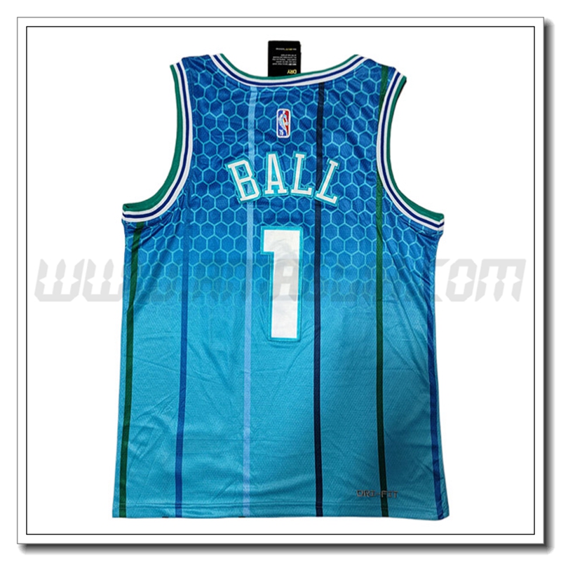 Copie Perfette Maglia Charlotte Hornets (BALL #1) 2022/23 Blu. siti affidabili tuta allenamento calcio squadre a poco prezzo