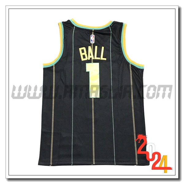 Nuova Maglia Charlotte Hornets (BALL #1) 2024/2025 Nero/Giallo. sito affidabile per l'acquisto tute da calcio a poco prezzo