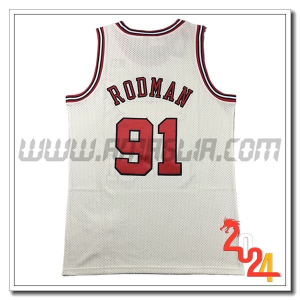 Nuova Maglia Chicago Bulls (RODMAN #91) 2024/2025 Bianco/Rosso. sito affidabile per l'acquisto tute squadre calcio a poco prezzo