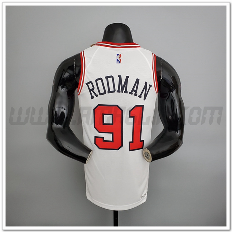 Maglia Chicago Bulls (Rodman #91) Bianco 75°anniversario