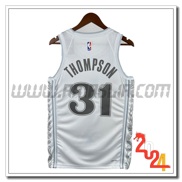 Nuovo Maglia Dallas Mavericks (THOMPSON #31) 2024/2025 Bianco/Grigio. sito affidabile per vendere tuta allenamento calcio squadre a poco prezzo