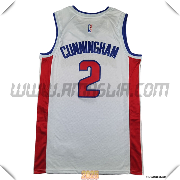 Nuova Maglia Detroit Pistons (CUNNINGHAM #2) 2025/2026 Bianco/Rosso/Blu. sito affidabile per l'acquisto tute da calcio a poco prezzo