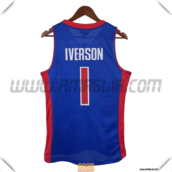 Nuova Maglia Detroit Pistons (IVERSON #1) 2025/2026 Blu/Rosso. sito affidabile per l'acquisto tute squadre calcio a poco prezzo