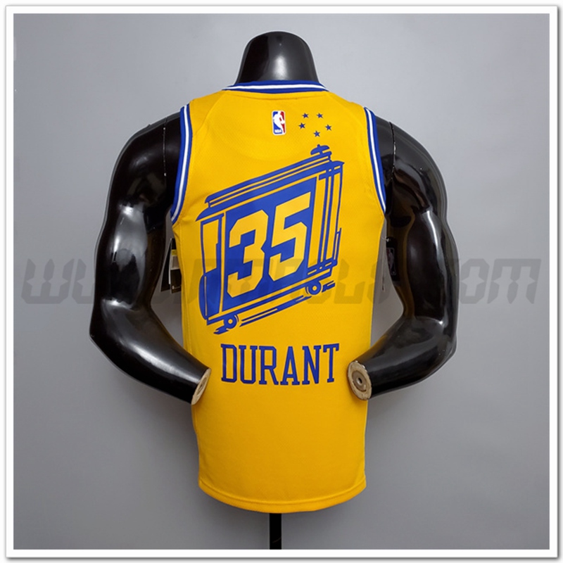 Copie Perfette Maglie Golden State Warriors (Durant #35) Giallo Tram Version. siti affidabili tuta allenamento Basket squadre a poco prezzo