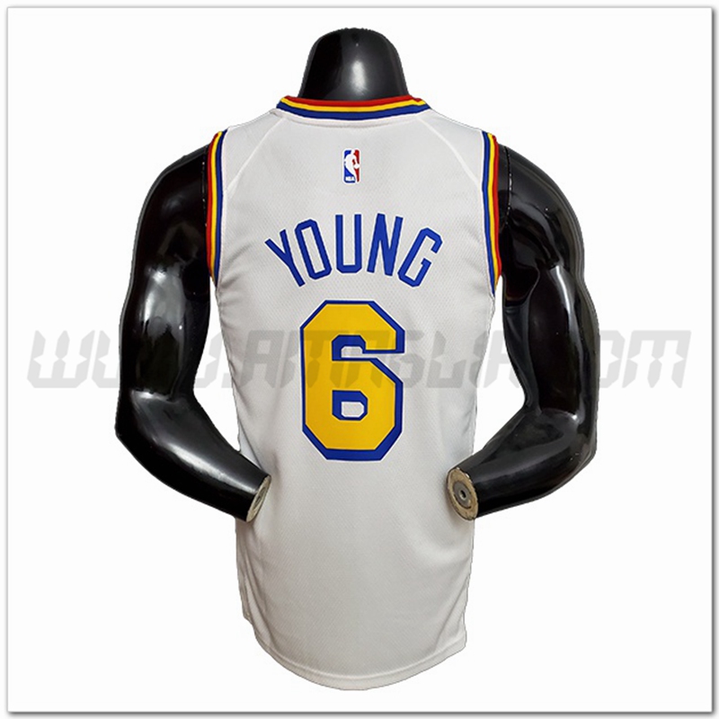 Copie Perfette Maglia Golden State Warriors (YOUNG #6) Bianco. siti affidabili tuta allenamento basket squadre a poco prezzo