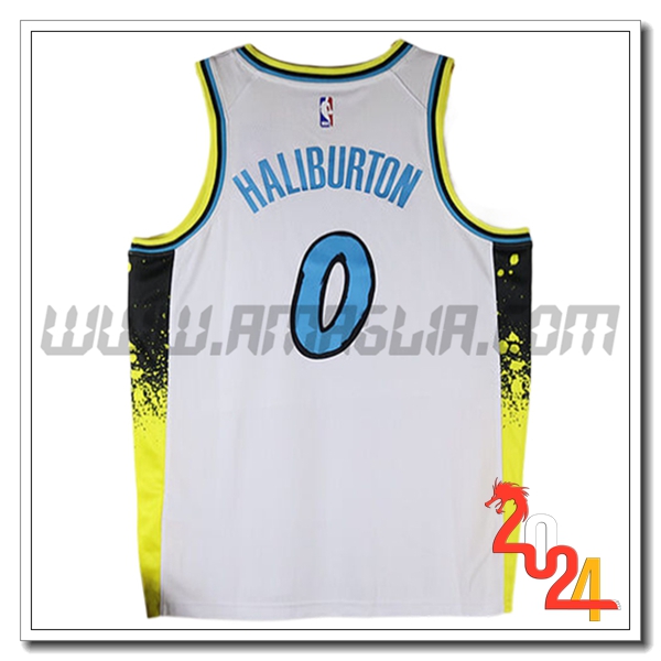 / Maglia Indiana Pacers (HALIBURTON #0) 2024/25 Bianco/Giallo/Nero/Blu