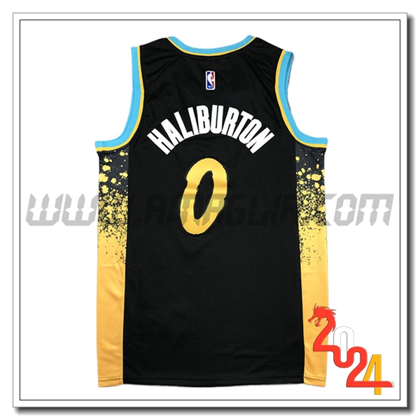 Maglia Indiana Pacers (HALIBURTON #0) 2023/24 Nero/Giallo