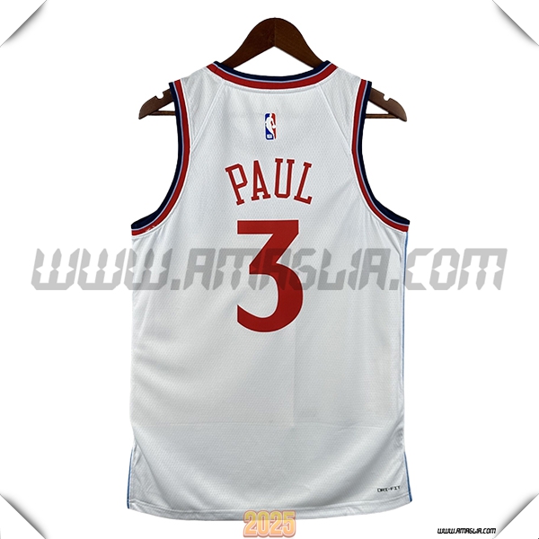 Nuovo Maglia Los Angeles Clippers (PAUL #3) 2025/2026 Bianco/Rosso. sito affidabile per vendere tuta allenamento calcio squadre a poco prezzo