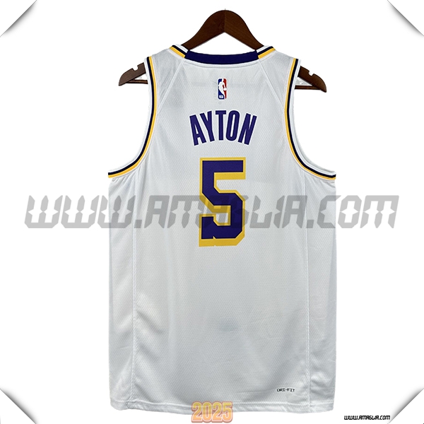 Nuovo Maglia Los Angeles Lakers (AYTON #5) 2025/2026 Bianco/viola/Giallo. sito affidabile per vendere tuta allenamento calcio squadre a poco prezzo
