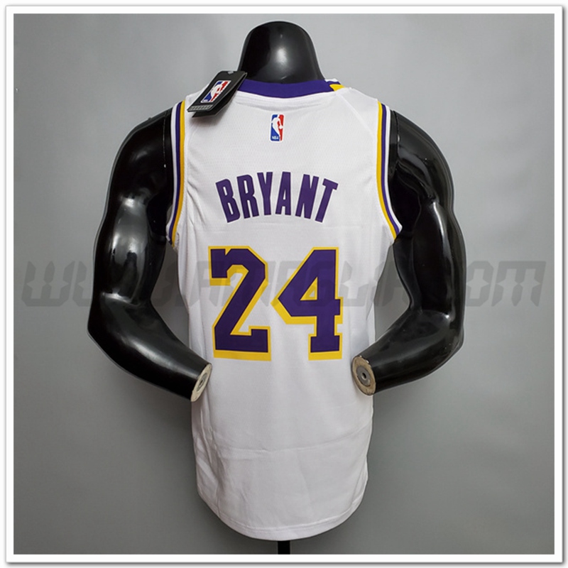 Copie Perfette Maglie Los Angeles Lakers (Bryant #24) Bianco Encolure Ronde. siti affidabili tute Basket a poco prezzo