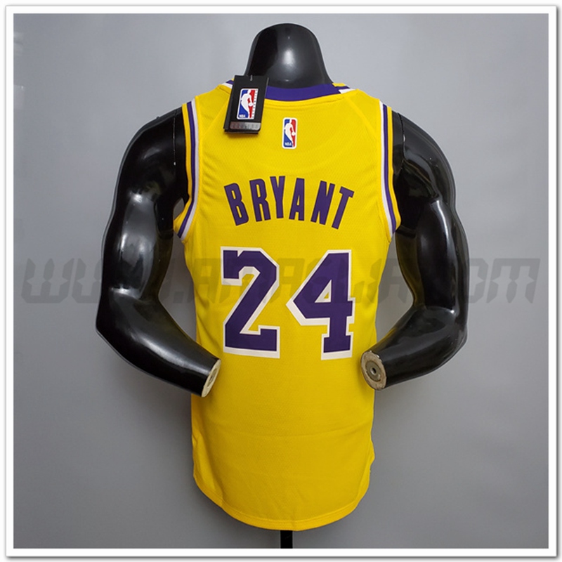 Copie Perfette Maglie Los Angeles Lakers (Bryant #24) Giallo Encolure Ronde Commemorative Edition. siti affidabili tute di Basket a basso prezzo