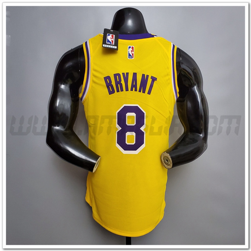Copie Perfette Maglie Los Angeles Lakers (Bryant #8) Giallo Encolure Ronde Commemorative Edition. siti affidabili tute Basket poco prezzo