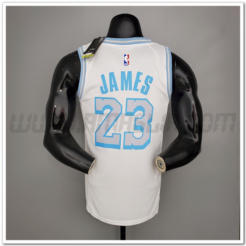 Copie Perfette Maglie Los Angeles Lakers (James #23) Bianco Encolure Ronde Retro Limitata. siti affidabili tuta allenamento Basket squadre a poco prezzo
